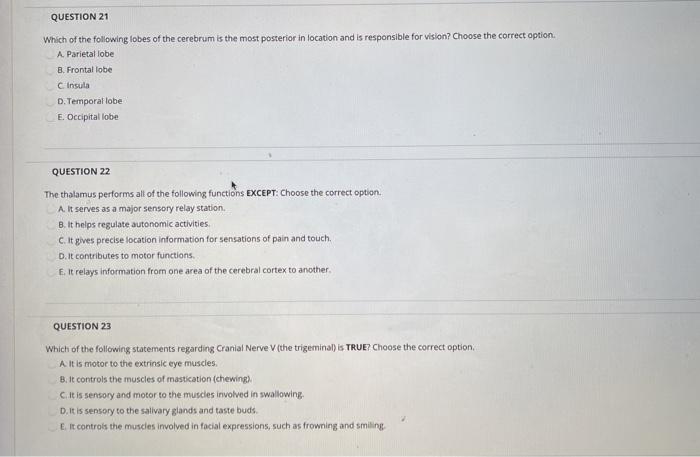 Solved Question 21 Which Of The Following Lobes Of The Chegg Com